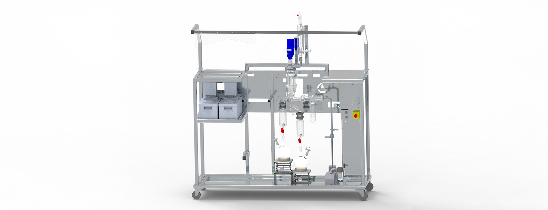 Short path distillation in a glass plant with 0.05 m2 wiped heating surface. KDL5 units are suitable for various throughputs
