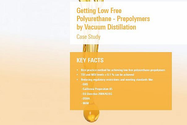 Polyurethan-Prepolymere werden zur Herstellung einer Vielzahl von Materialien und Produkten verwendet, darunter Schäume, Klebstoffe und Heißkleber, Dichtungen, Beschichtungen und Gummi. Prepolymere entstehen durch die Reaktion von Polyolen mit Isocyanaten. Isocyanate sind eine Gruppe hochreaktiver Chemikalien, die durch das Vorhandensein einer Isocyanatgruppe (–N=C=O) gekennzeichnet sind. Einige Isocyanate, wie zum Beispiel Toluol-Diisocyanat (TDI), gelten als hochgefährlich und giftig. Nach der Reaktion sind die Isocyanatwerte im Produkt deutlich überhöht. Um ein sicheres und wettbewerbsfähiges Produkt zu erhalten, das internationalen Standards entspricht, muss dieser Überschuss entfernt werden.